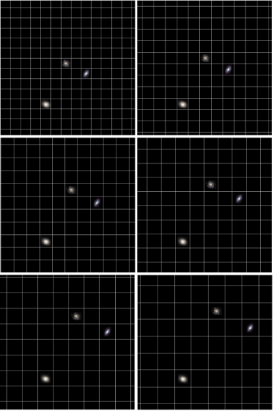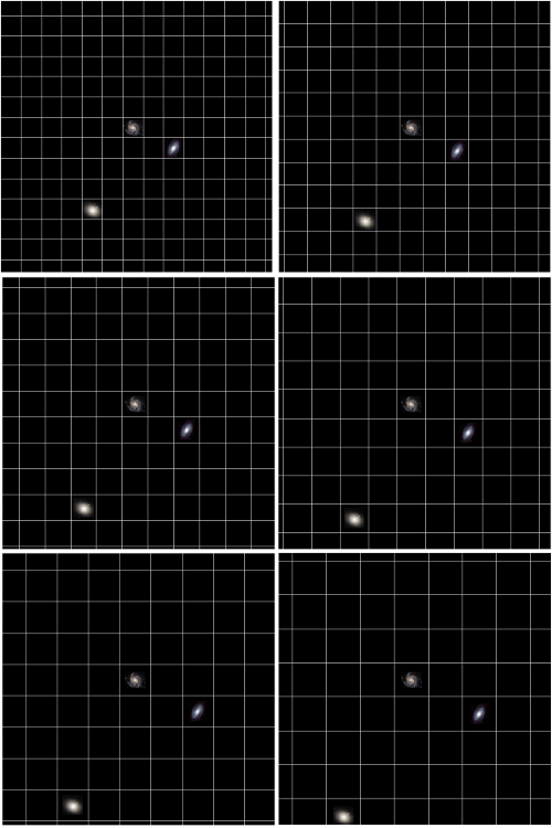 The picture above is from the Milky Way’s perspective; the picture below is from the perspective of the galaxy at the lower left. When you use the cosmic box approach, you can see that observers in every galaxy will measure cosmic expansion in the same way.