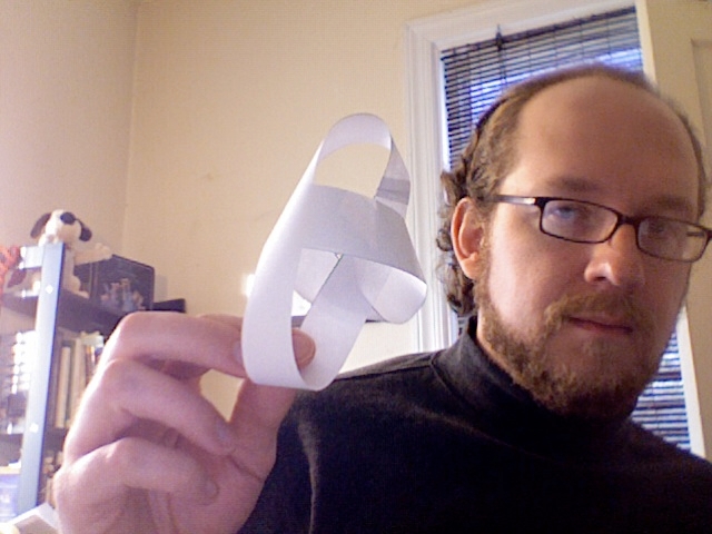 As I mentioned last week, I’m reading through Experiments in Topology by Stephen Barr. It’s a pretty gentle introduction to what can be a daunting mathematical subject, and since I’m rusty on a lot of the math (and haven’t ever done much with topology before), I’m really enjoying the book. Soon enough we won’t be able to do simple fun paper-and-scissors exercises, but let’s enjoy the moment and make a few more fun shapes. This time, I’m providing plans! (Bill Cosby was not available to make a video, but you can imagine him narrating this post if you want.)