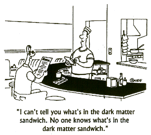 The standard explanation: spiral galaxies contain a large amount of mass that isn’t made of stars, gas, dust, or anything ordinary. This missing mass is dark matter. Matter made of atoms—the stuff of everyday experience for us—absorbs and reemits light to varying degrees, so it doesn’t hide completely, even if it’s cold and spread out through space. Over time, astronomers were able to rule out neutrinos as a possible candidate for dark matter as well: neutrinos have a very tiny mass (if they were massless, they wouldn’t affect the rotation of galaxies strongly), but it seems to be too small. Rather than stick around galaxies, they seem to flow away at high speeds. That pretty much leaves dark matter as a new, unknown type of particle. (Again, I’m summarizing here—there’s enough history and science of dark matter to fill books.)