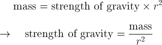 Here, the “strength of gravity” isn’t the same as the gravitational force. Instead, it’s expressed as the acceleration, which is the same for every falling body (in the absence of air resistance), as Galileo realized, though the language he used was different than how we express it today. The inverse square law of gravity in Newton’s law is probably the most important result in all of astrophysics: it shows why Kepler’s laws are correct, describes the motion of stars in galaxies, and when combined with other equations elucidates the internal structure of stars.