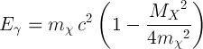 where Eγ is the gamma ray energy, mχ is the WIMP mass, and MX is the mass of whatever other product comes out of the annihilation. (My apologies for using both X and χ in the same equation; it’s not my fault.) (If X is a second gamma ray, then the energy of the photon is the same as the rest energy of the WIMP.) In other words, seeing a gamma ray with a given energy doesn’t automatically give us the WIMP mass, but plugging in (say) the Higgs boson mass for MX would tell us whether the dark matter particle corresponds to anything in an existing model.