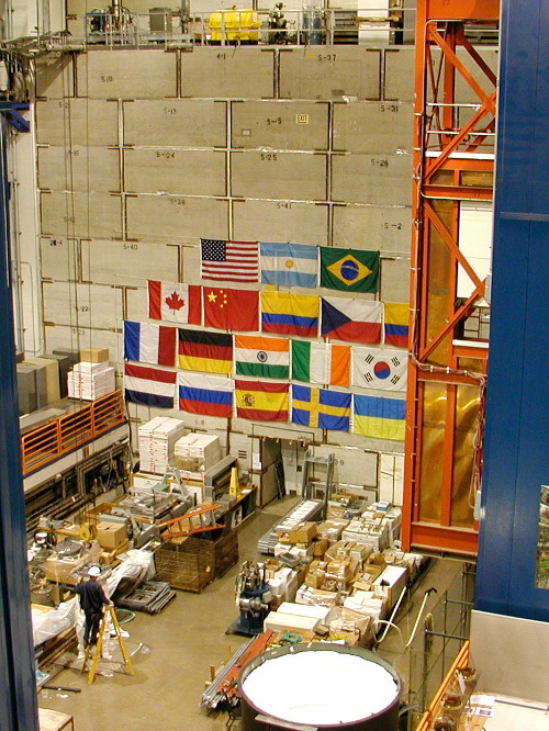 ![The high bay of the DZero detector at Fermilab. The detector itself lies behind the concrete wall covered in the flags of the 18 nations participating in the project. [Credit: moi]](https://galileospendulum.org/wp-content/uploads/2013/08/dzero_wall_small.jpg?w=225&h=300)